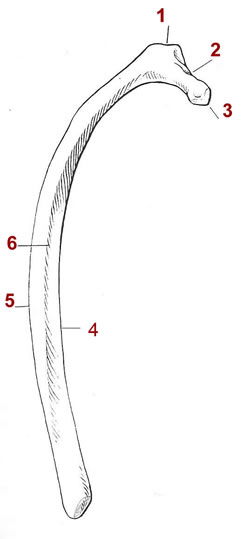 18 costillas, 8 esternales y 10 asternales. Son más finas, largas e incurvadas. | 13 costillas, 8 esternales y 5 asternales Son más largas, anchas y menos encorvadas. | 14 - 15 costillas, 7 esternales y 7 - 8 asternales. Manifiesta arqueadura en la parte superior. |